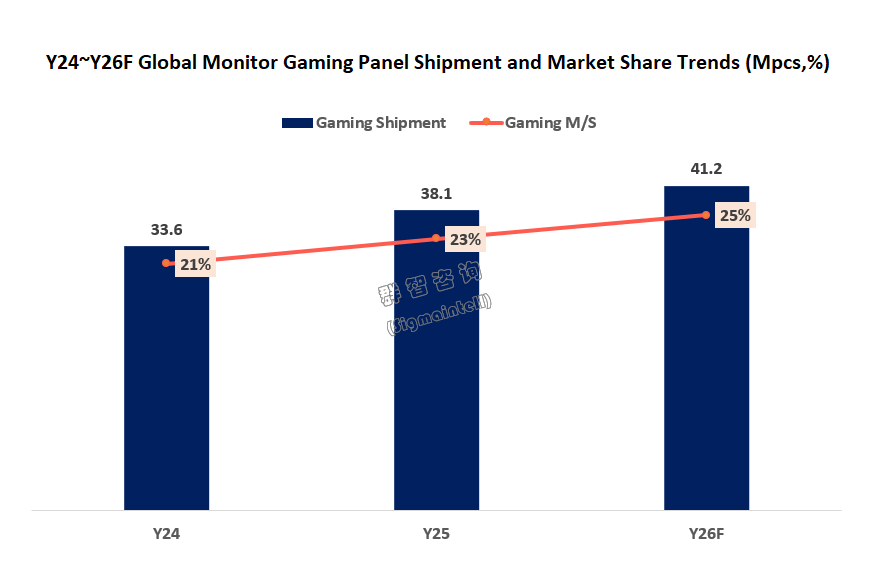 2025年全球电竞显示器面板出货规模达 3800万片,市场渗透率提升至 23%,成为显示器面板市场的核心增长抓手。但存储芯片的短缺与涨价将成为电竞面板增长的潜在制约,为 2026 年市场表现埋下不确定性因素。