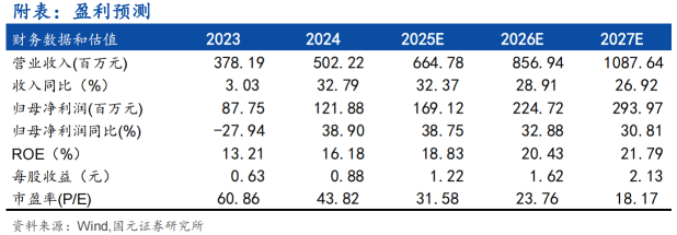 公司是国内领先的结构力学性能研究和电化学工作站解决方案提供商,下游景气度旺盛。国元证券预计公司2025-2027年分别实现营收6.65/8.57/10.88亿元,归母净利润为1.69/2.25/2.94亿元,EPS为1.22/1.62/2.13元/股,对应PE为31.58/23.76/18.17倍,维持“增持”评级。