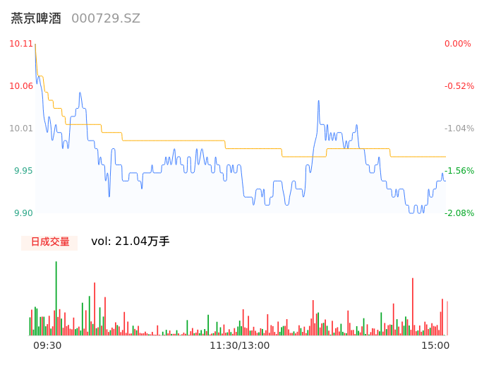 05月08日,燕京啤酒收报9.94,股价涨幅-1.68%,成交金额2.10亿元,换手率0.84%。
