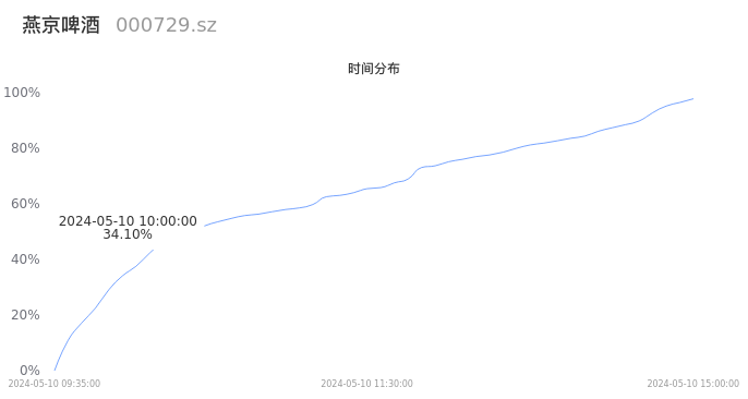 000729燕京啤酒2024年05月10日成交16.84万手,成交金额1.71亿元,相较昨日缩量8.96万手,换手率0.67%,成交清淡。