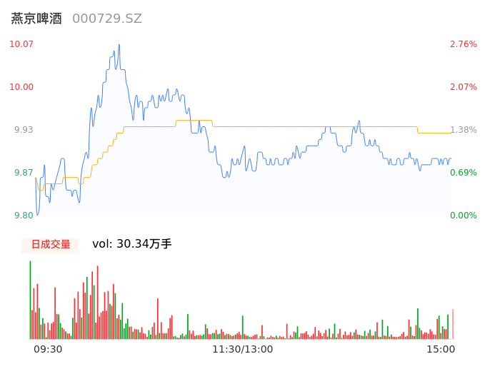04月30日,燕京啤酒收报9.89,股价涨幅0.92%,成交金额3.01亿元,换手率1.21%。