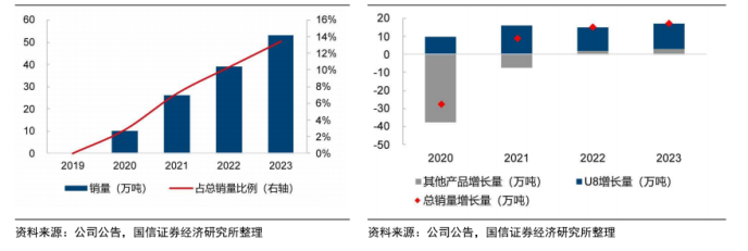 3)公司战略大单品U8持续放量,加速优化产品结构、提升盈利能力