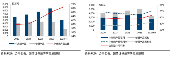 图表3:公司中高端产品收入占比提升(左)公司中高端产品的毛利润贡献更大(右)