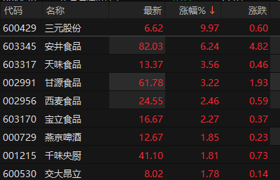 上证报中国证券网讯 11月12日早盘,食品饮料板块表现活跃,截至9时43分,三元股份涨停走出3连板,安井食品涨超6%,天味食品甘源食品涨逾3%,西麦食品宝立食品燕京啤酒等跟涨。