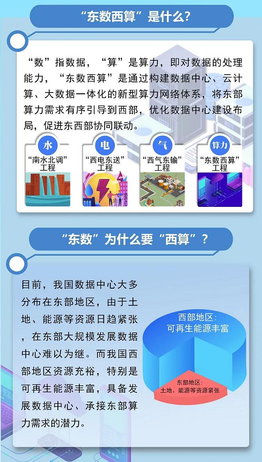 近期“东数西算”工程全面启动、每年投资或达数千亿元!国家将“东数西算”提高到比肩“南水北调”、“西电东送”、“西气东输”等重大工程的地位,表明中央对全国资源调配的强大决心,坚定数字经济战略地位。