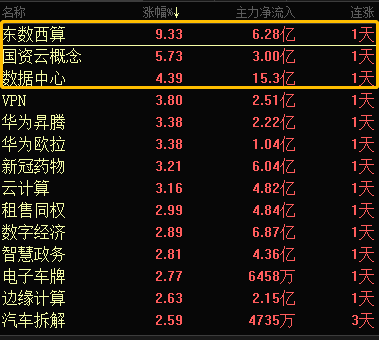 受“东数西算”工程正式启动消息提振,数据中心、云计算、大数据概念股18日盘中强势拉升!前三与之相关的概念板块日内的主力净流入近达25亿元!!