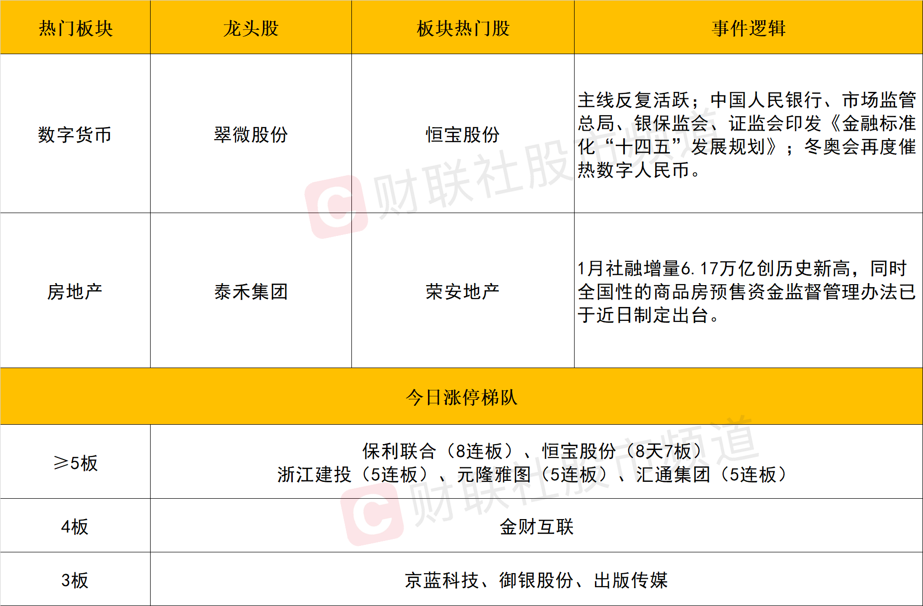 数字货币板块是近期的穿越主线,已经产生了不少牛股,比如翠微股份、金财互联、恒宝股份。翠微股份、金财互联走出了多波行情,这也是资金敢于顶板恒宝股份的底气。由于今日资金又大幅回流数字货币板块,所以恒宝股份在下周一的开盘溢价可能非常高。但从另一角度看,金财互联是所有数字货币概念股中第一波主升行情中最高连板的个股,其高度是7连板。恒宝股份作为新晋的补涨龙,冲刺7连板的高度或许有一定的压力。同时,翠微股份尾盘跳水或也是一个风险信号。