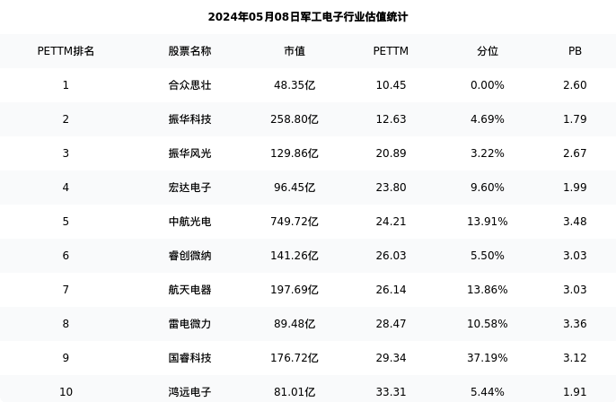 从估值角度看:振华科技最新市盈率PETTM为12.63,在行业内排名2/60,处于4.69分位。
