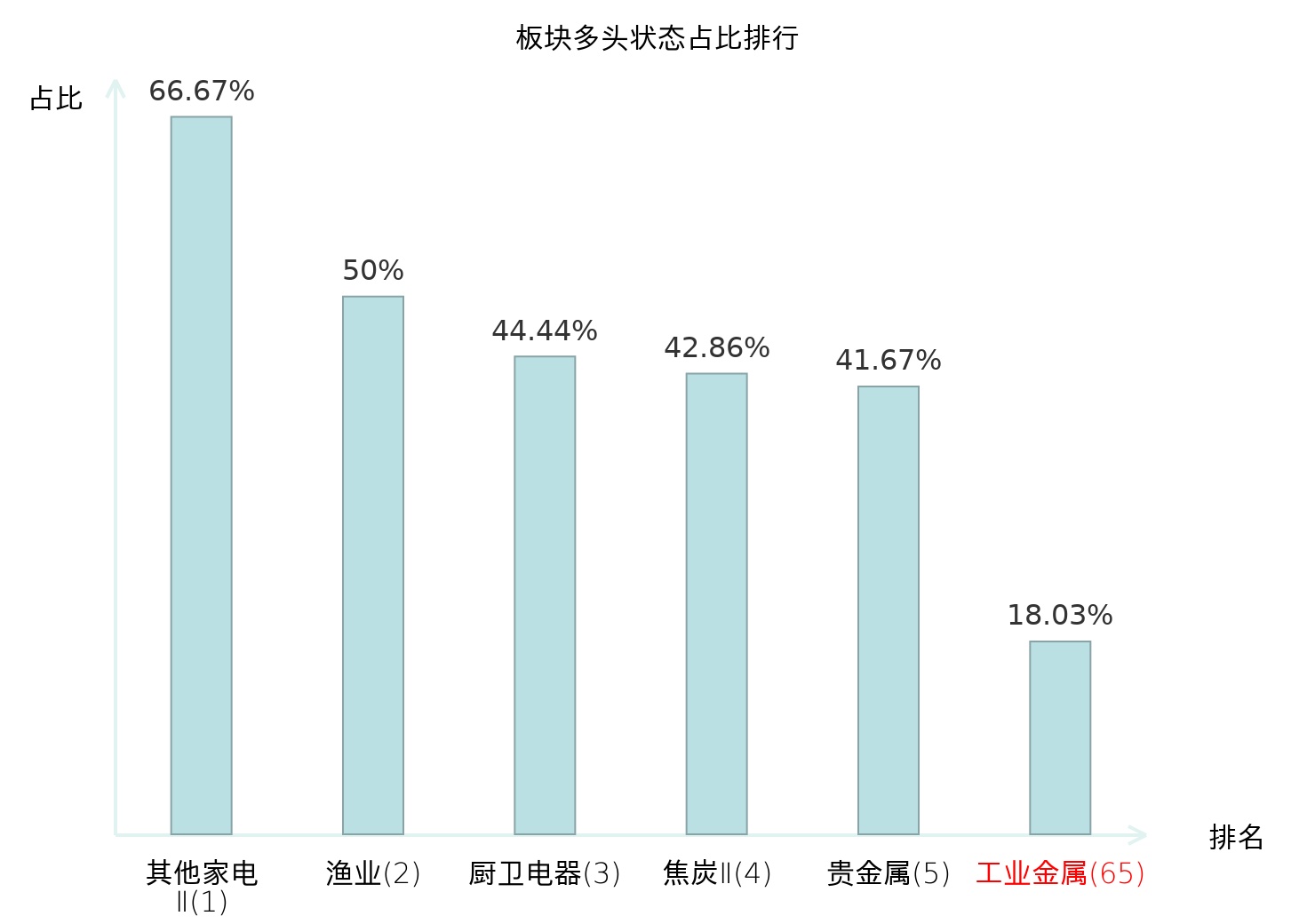 全市场所有行业板块中主力多头状态占比排名中,其他家电Ⅱ板块位居第一。乘用车板块名次提升最快,较昨日上升82位。