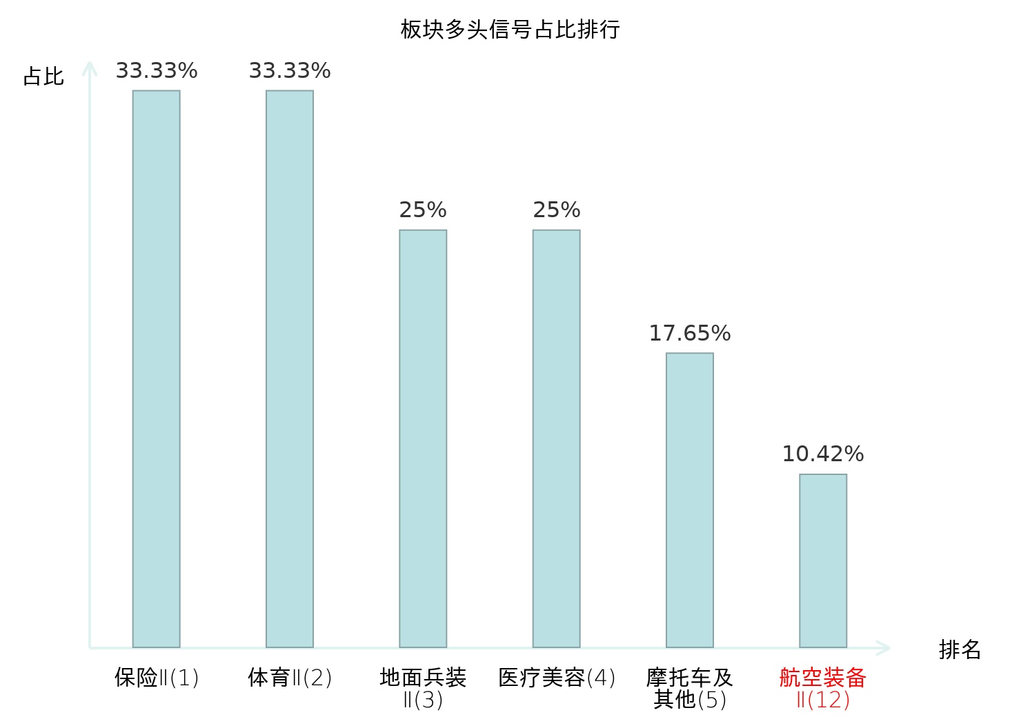 全市场所有行业板块中主力多头信号占比排名中,保险Ⅱ板块位居第一。体育Ⅱ板块名次提升最快,较昨日上升128位。