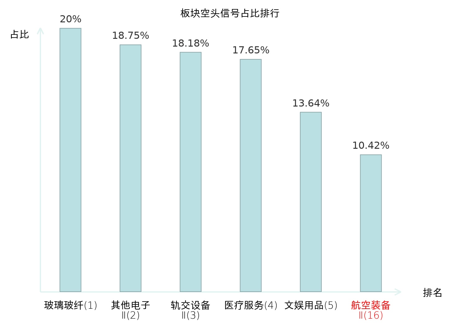 全市场所有行业板块中主力空头信号占比排名中,玻璃玻纤板块位居第一。医疗服务板块名次提升最快,较昨日上升126位。