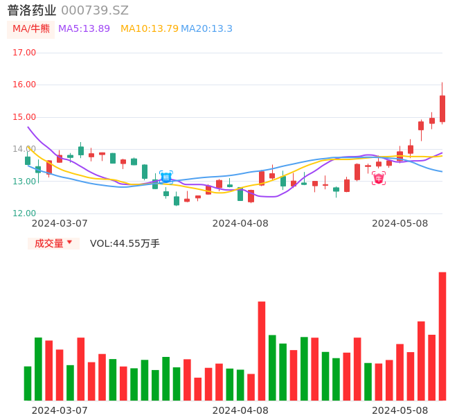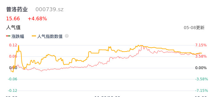 05月08日,普洛药业收报15.66,股价涨幅4.68%,成交金额6.85亿元,换手率3.78%。