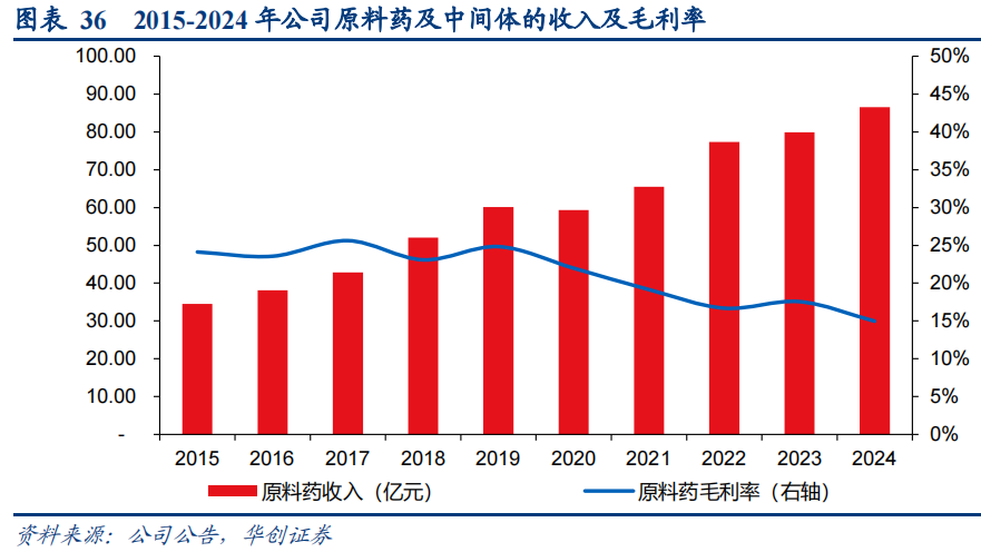 看点三、原料药业务:先进制造优势显著,稳中向好。