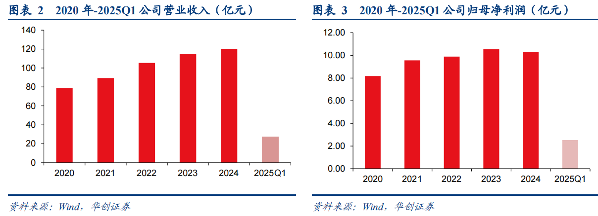 2020-2024年,三大业务板块的内生增长叠加经营效率的持续优化,公司收入稳步向上,归母净利润也从2020年的8.17亿元增长到2024年的10.31亿元。