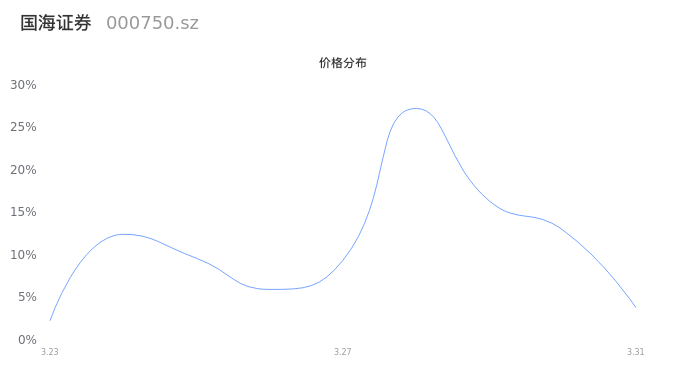 然后我们来看下当日成交的价格分布。经过分析发现,该股票当日成交价格波动低于10个最小波动价位,由于可以参考的样本量非常少,价格分布分析的结果不具有指导意义,下图仅供参考。