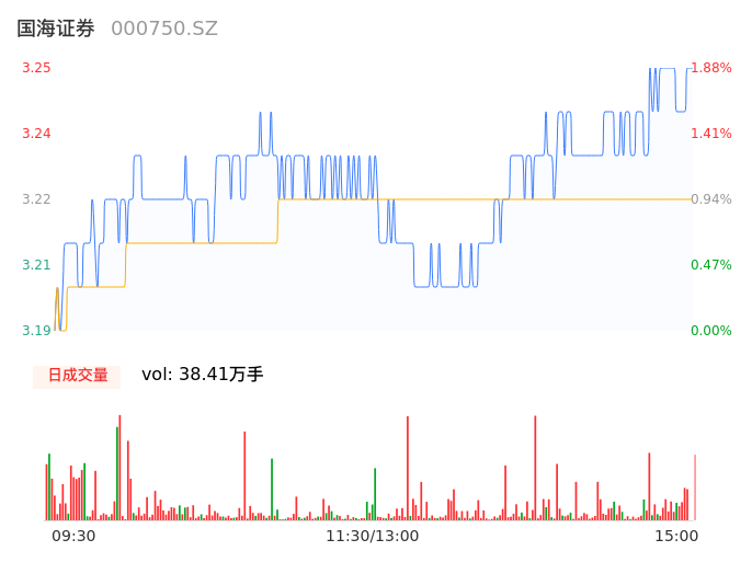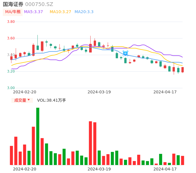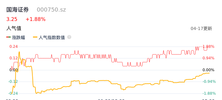 04月17日,国海证券收报3.25,股价涨幅1.88%,成交金额1.24亿元,换手率0.71%。