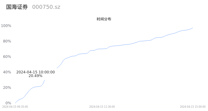 000750国海证券2024年04月15日成交42.96万手,成交金额1.39亿元,相较昨日放量18.63万手,换手率0.79%,成交清淡。