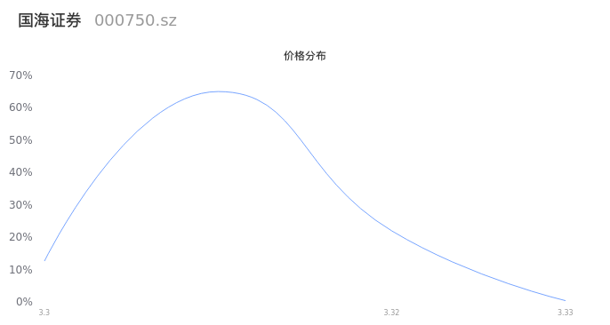 然后我们来看下当日成交的价格分布。经过分析发现,该股票当日成交价格波动低于10个最小波动价位,由于可以参考的样本量非常少,价格分布分析的结果不具有指导意义,下图仅供参考。
