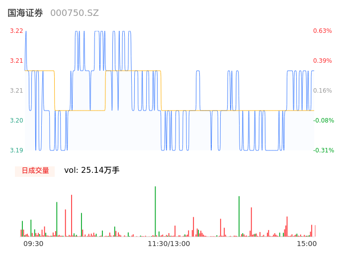 04月24日,国海证券收报3.21,股价涨幅0.31%,成交金额8047.39万元,换手率0.46%。