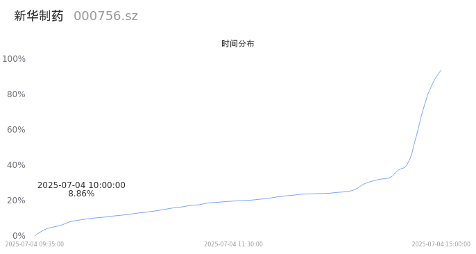 000756新华制药2025年07月04日成交39.11万手,成交金额6.18亿,相较昨日放量23.46万手,换手率7.94%,成交清淡。