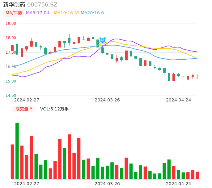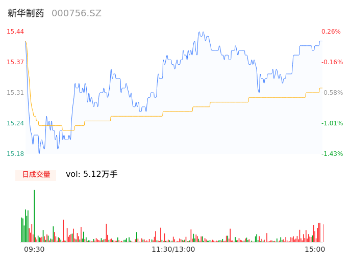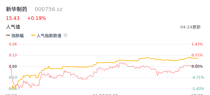 04月24日,新华制药收报15.43,股价涨幅0.19%,成交金额7846.53万元,换手率1.14%。