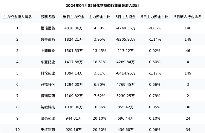 从主力资金流向来看,化学制药行业今日主力资金流入36.82亿元,在所有申万二级行业中排名:63/131。