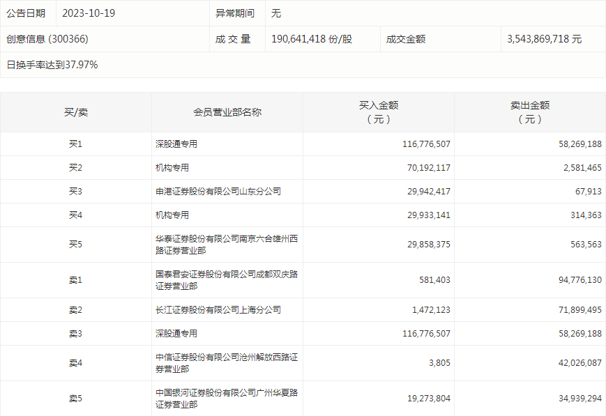 创意信息今天涨2.24%。盘后数据显示,2个机构出现在龙虎榜单上,合计净买入9722.94万元;华泰证券股份有限公司南京六合雄州西路证券营业部买入2985.84万元,同时卖出56.36万元;国泰君安证券股份有限公司成都双庆路证券营业部买入58.14万元,同时卖出9477.61万元。