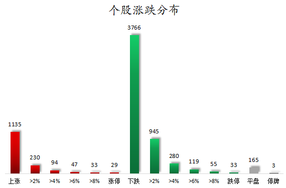 截至收盘,沪深两市合计1135个股上涨,3766只个股下跌,平盘个股165只,停牌的个股3只。不含当日上市新股,共有29只个股涨停,33只个股跌停。续涨停天数看,圣龙股份均已连收10个涨停板,连续涨停板数量最多。