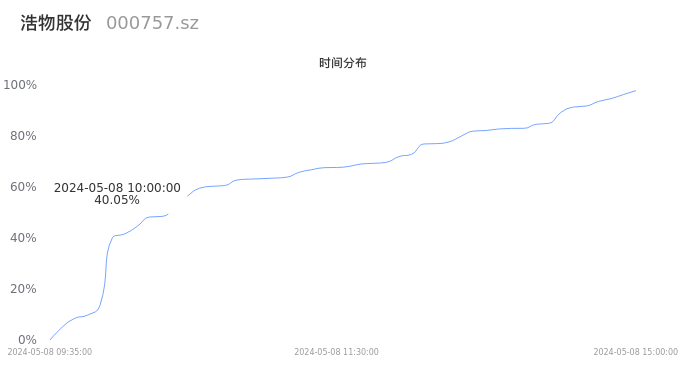 000757浩物股份2024年05月08日成交8.78万手,成交金额2936.76万元,相较昨日缩量1.30万手,换手率1.65%,成交清淡。