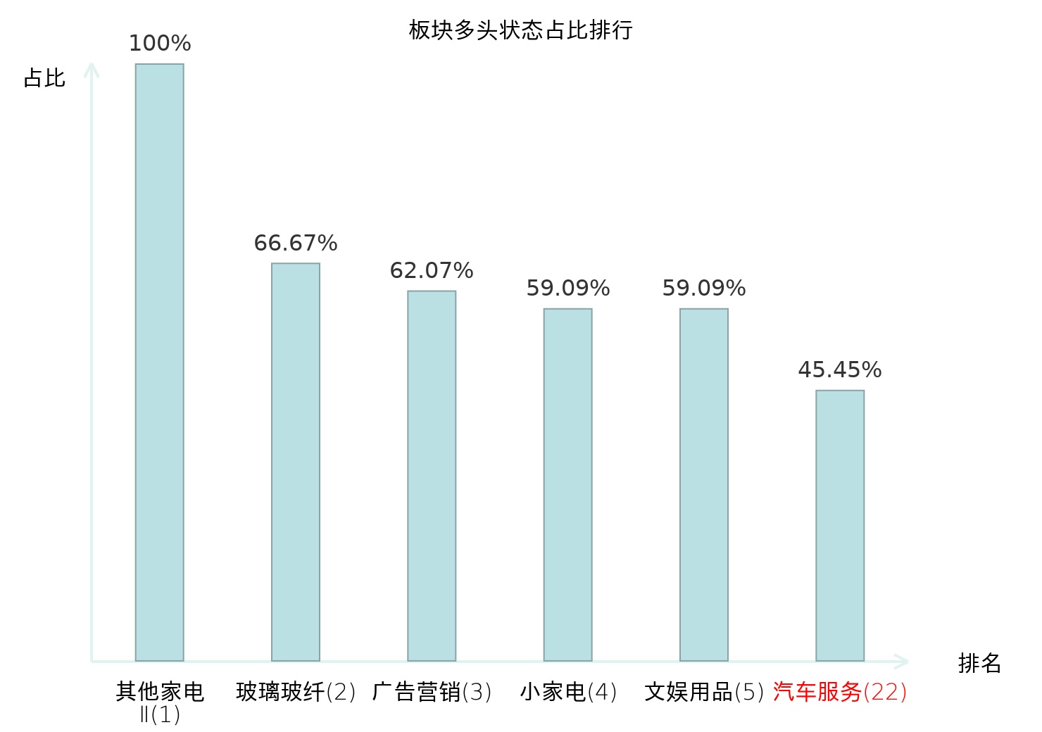 从主力宝信号数据分析,浩物股份所属的汽车服务板块中共有5只股票处于主力多头状态,主力多头状态占比在全行业中排名第22位,较昨日上升24位。排名上升表明主力对于该板块整体看多意愿增强,这为投资者提供了关于市场情绪和潜在投资机会的重要参考。全市场所有行业板块中主力多头状态占比排名中,其他家电Ⅱ板块位居第一;消费电子板块名次提升最快,较昨日上升54位。这些变动揭示了不同行业间主力资金动向的趋势,有助于投资者理解当前市场的动态和趋势。