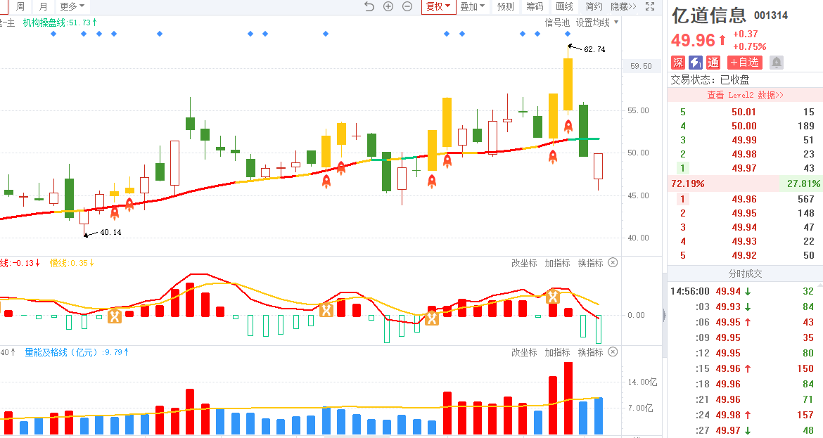 2)亿道信息-四维操盘-近期出现火箭信号且底部量柱由绿转红