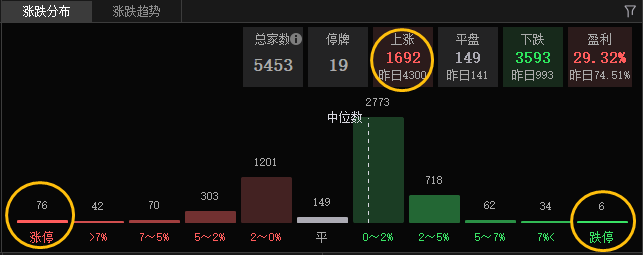 个股表现上,今天超3500股下跌,76只涨停,跌停6只,个股中位数-0.3%,局部赚钱效应强劲,但分化明显,毕竟个股普跌。而量能上全天缩量近300亿较中午没有啥变化,1.8万亿下方的成交量,说明短期的反弹人气是不强的,稍显弱势,而指数看上去较好是因为受部分权重股的绑架,这里只有走出大小共振的放量行情,才有望重拾升势。因此明天的行情要警惕今天拉涨的权重出现回落砸盘的情况。