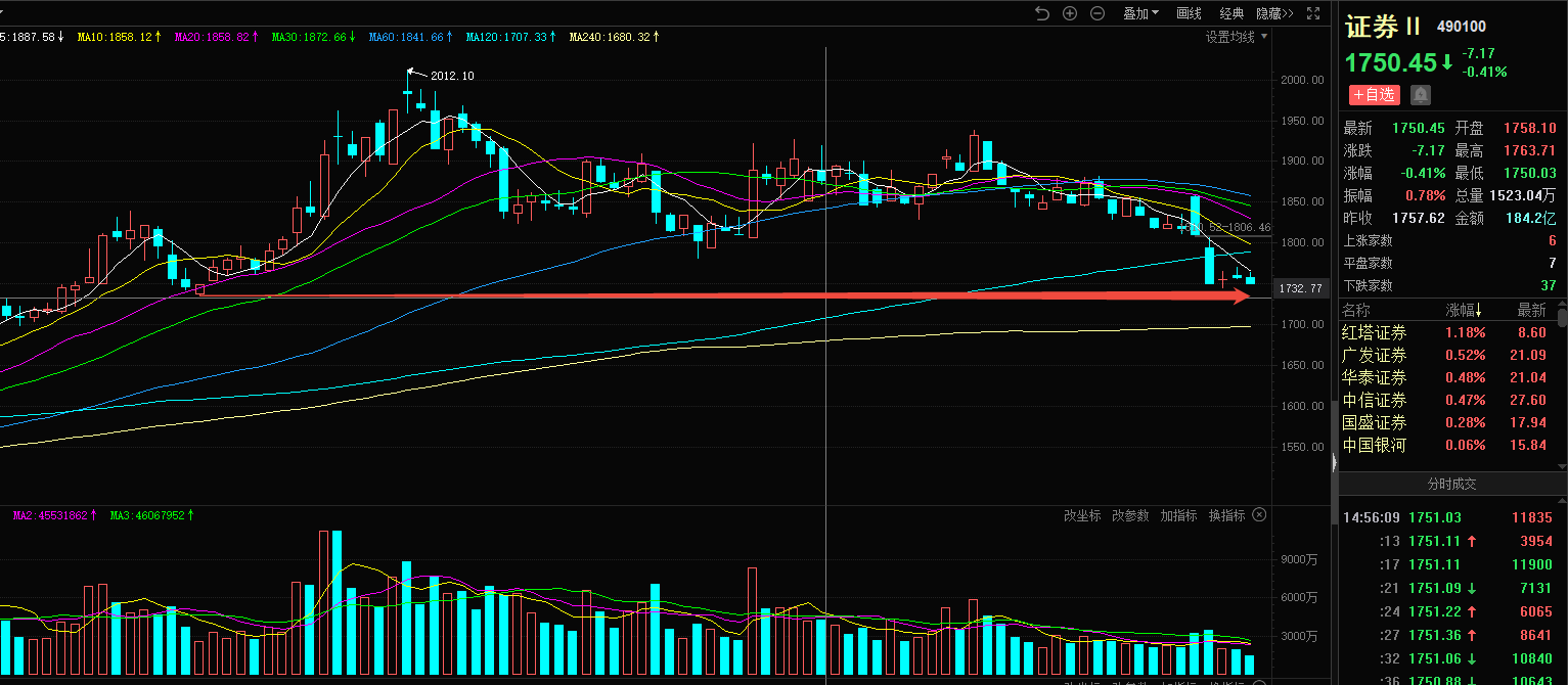 下午银行保险跌幅没有继续扩大,倒是证券砸了下来。