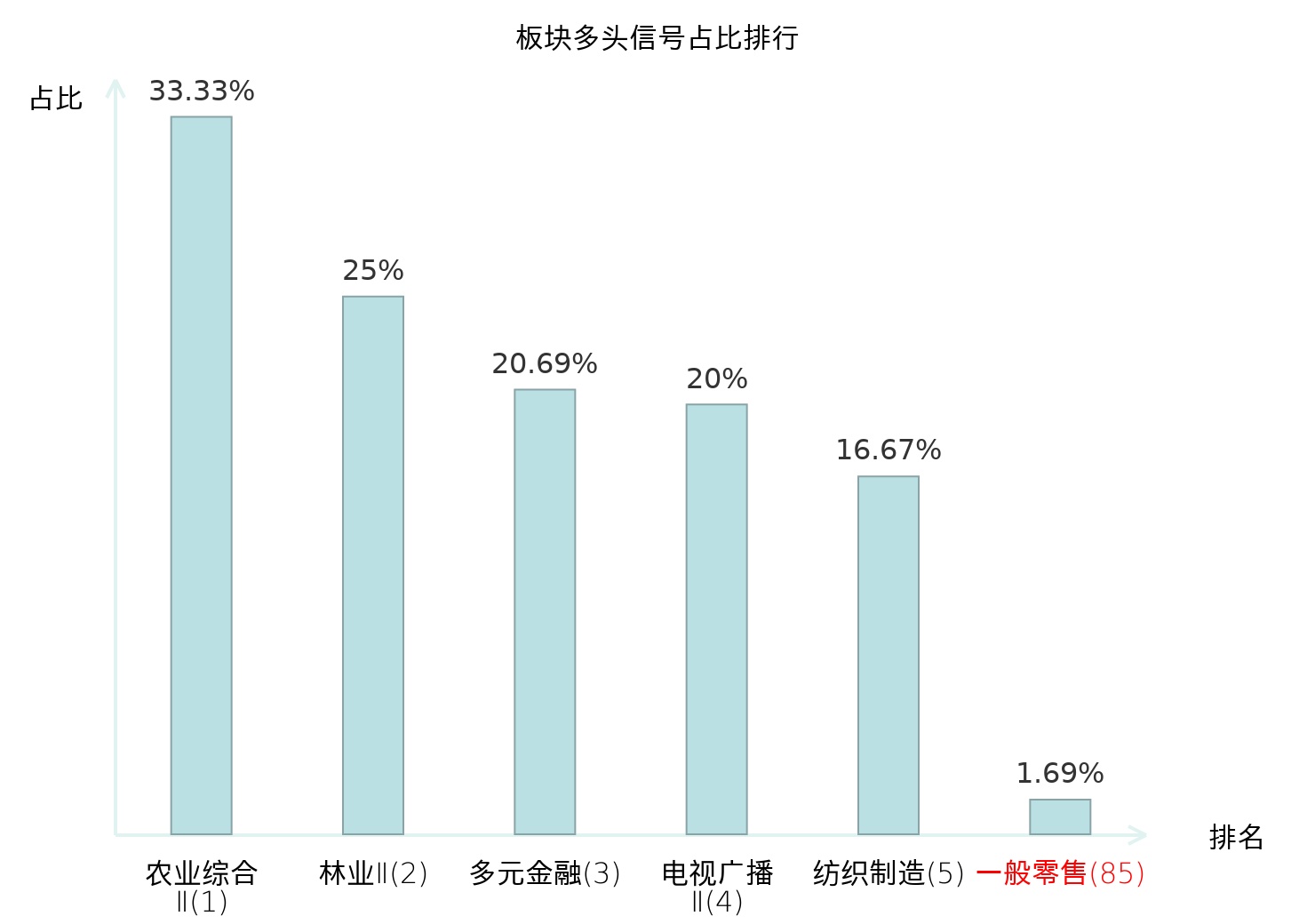 从主力宝信号数据分析,中百集团所属的一般零售板块中共有1只股票发出主力多头信号,主力多头信号占比在全行业中排名第85位,较昨日下降40位。较高的排名表明主力当日买入意愿较强,但排名下降可能反映了主力对该板块态度的微调。全市场所有行业板块中主力多头信号占比排名中,农业综合Ⅱ板块位居第一。农业综合Ⅱ板块名次提升最快,较昨日上升127位。这些变动揭示了不同行业间主力资金动向的趋势,为投资者提供了关于市场情绪和潜在投资机会的重要线索。