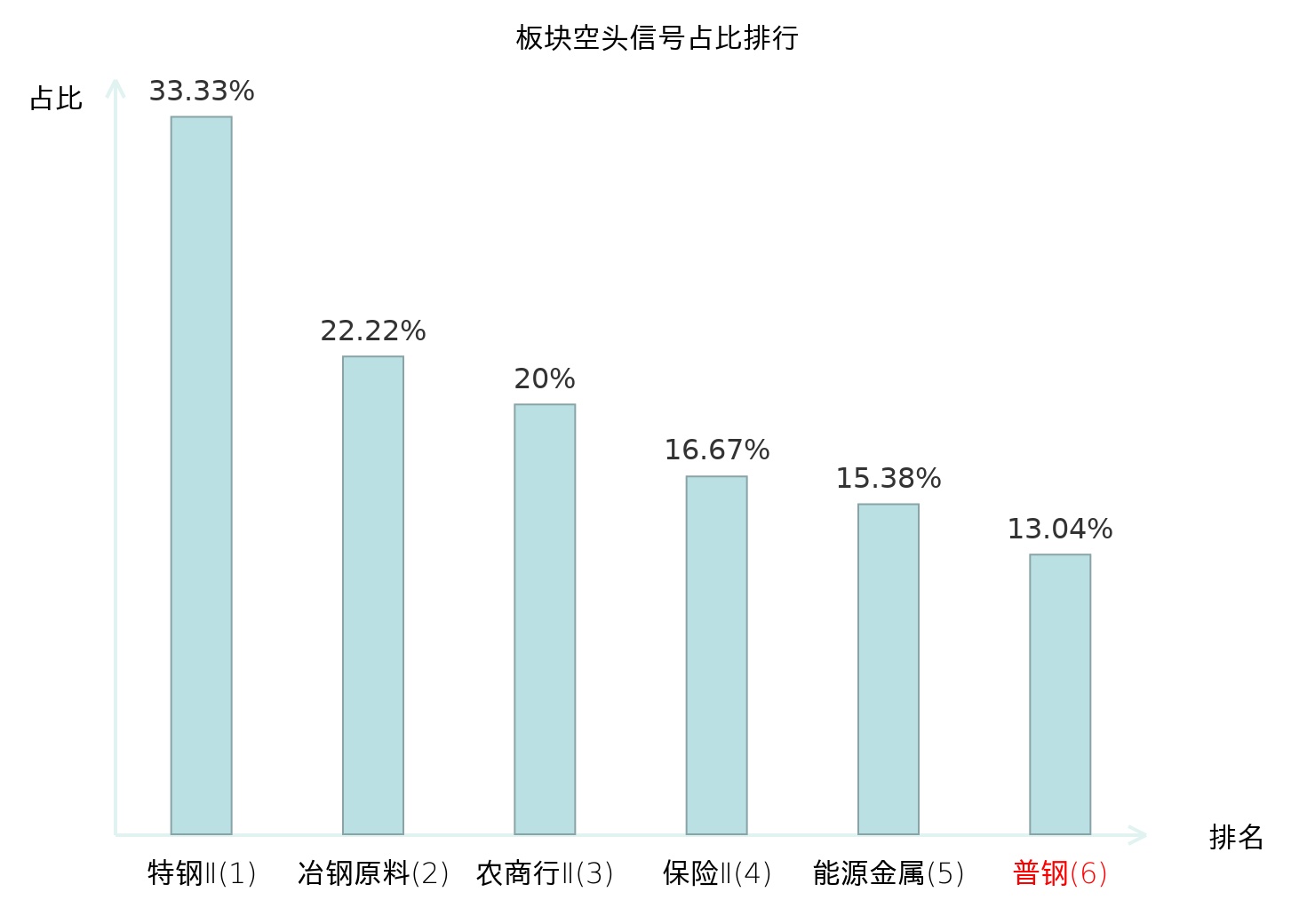 全市场所有行业板块中主力空头信号占比排名中,特钢Ⅱ板块位居第一。其他电子Ⅱ板块名次提升最快,较昨日上升117位。