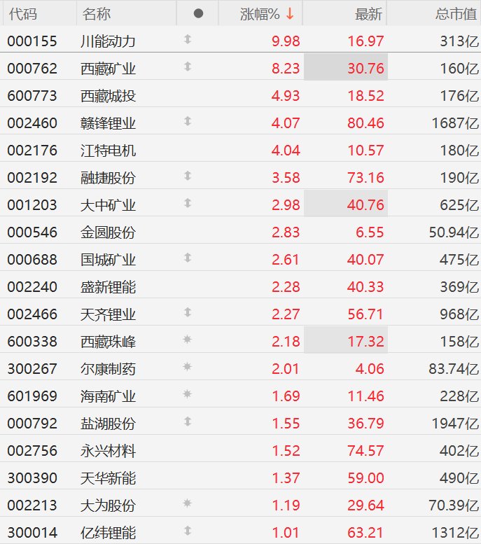 A股异动丨锂矿股逆势上涨,赣锋锂业涨超4%,碳酸锂主力合约盘中拉升