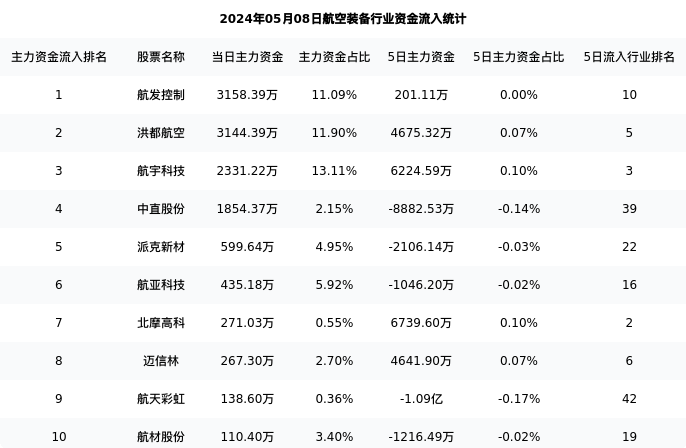 从主力资金流向来看,航空装备行业今日主力资金流入42.68亿元,在所有申万二级行业中排名:78/131。