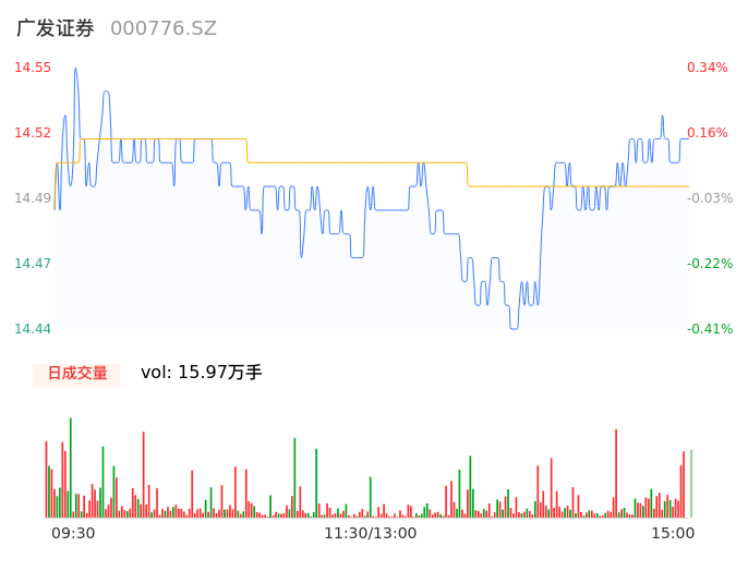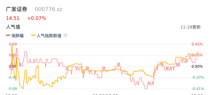 11月28日,广发证券收报14.51,股价涨幅0.07%,成交金额2.32亿元,换手率0.27%。