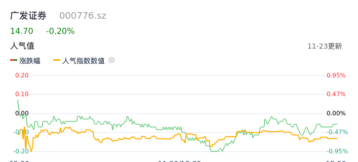 11月23日,广发证券收报14.70,股价涨幅-0.20%,成交金额4.97亿元,换手率0.57%。