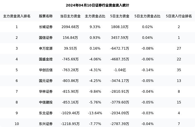 下表为今日行业内流入前10股票的信息