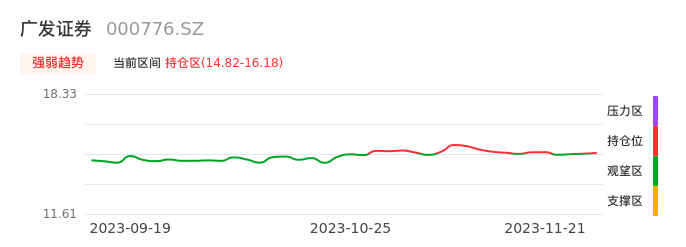 我们来看一下该股的九方特色指标强弱趋势的情况:广发证券近日从观望区上穿到持仓区。股价短期站稳多头区域,上升动能仍较为充足,可积极关注。后续重点关注上方压力位:16.18元是否能突破上攻。