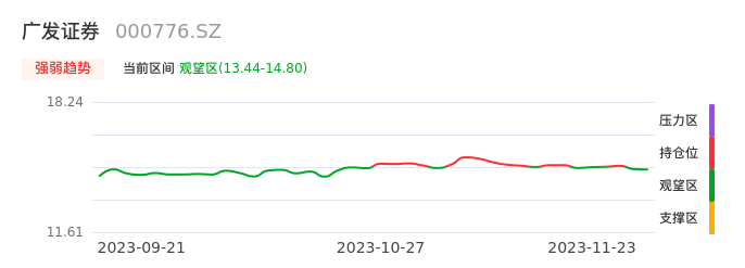 我们来看一下该股的九方特色指标强弱趋势的情况:广发证券近日从持仓区下穿到观望区,股价出现持续性调整行情。短期已经转为空头行情,且下跌动能仍未衰竭。建议继续谨慎观望。