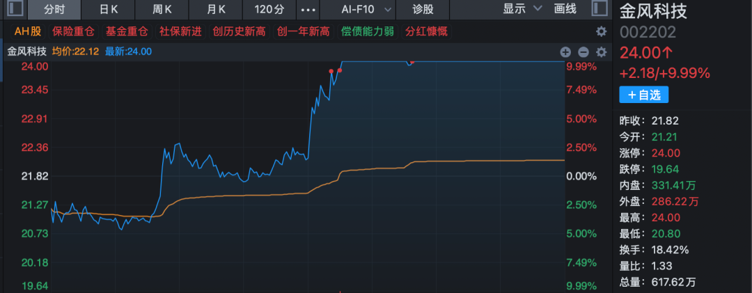 市场热点方面,风电概念股午后走强,板块指数下午开盘即放量单边上扬,大涨4.45%,创近2个月新高。金风科技午后开盘仅约15分钟直线涨停,股价创历史新高(复权,下同),明阳智能则在临近收盘最后7分钟涨停。