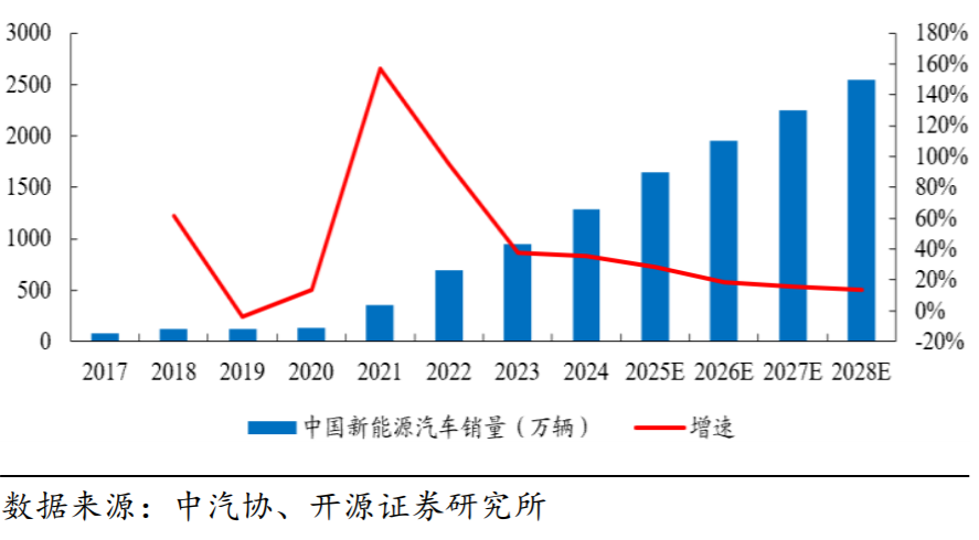 2017-2028 年中国新能源汽车销量预测及增速(左),2020-2030 年中国汽车注塑件市场规模预测(右) |