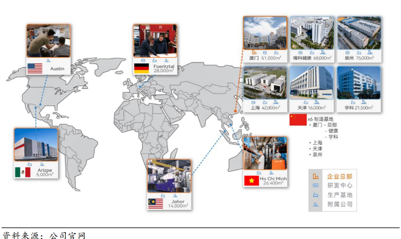公司通过收购宇科塑料拓展了客户资源(左),公司生产基地遍布全球(右) |