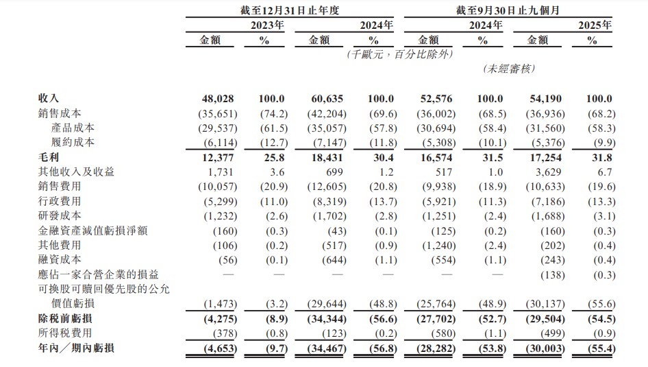 在此背景下,公司近几年的营收稳步提升,2023年、2024年及2025年前九个月,该公司营业收入分别为4802.8万欧元、6063.5万欧元和5419.0万欧元;净亏损分别为465.3万欧元、3446.7万欧元和3000.3万欧元。