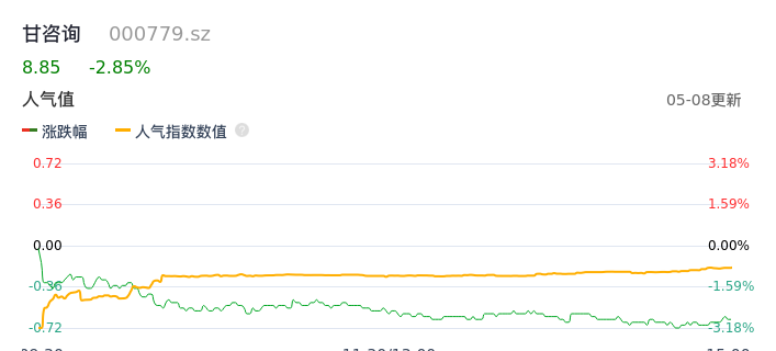 05月08日,甘咨询收报8.85,股价涨幅-2.85%,成交金额4058.37万元,换手率1.21%。