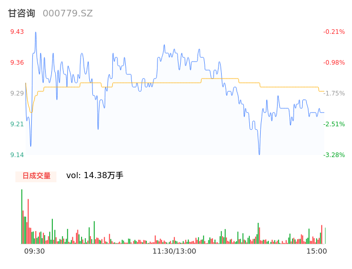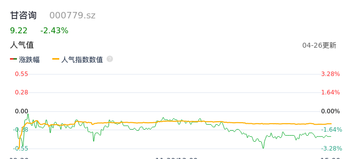 04月26日,甘咨询收报9.22,股价涨幅-2.43%,成交金额1.34亿元,换手率3.82%。
