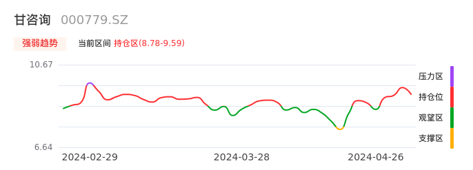 我们来看一下该股的九方特色指标强弱趋势的情况:甘咨询自04月23日从观望区上穿到持仓区。股价近期在多头区域回调整理。后续重点关注多空分界点的争夺:8.78元。如未能有效站稳则可能重新回到空头行情。