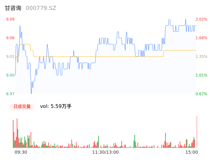 05月06日,甘咨询收报9.09,股价涨幅2.02%,成交金额5051.74万元,换手率1.48%。